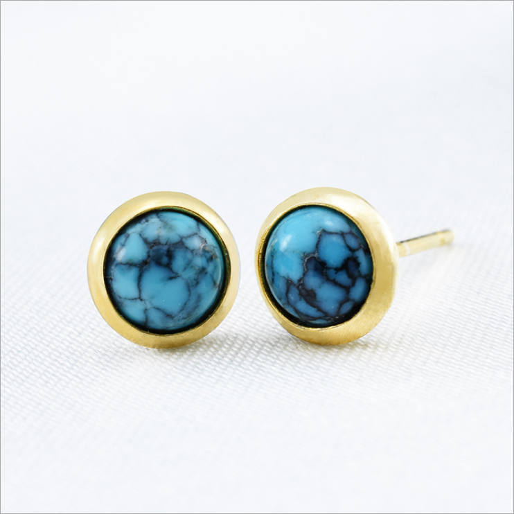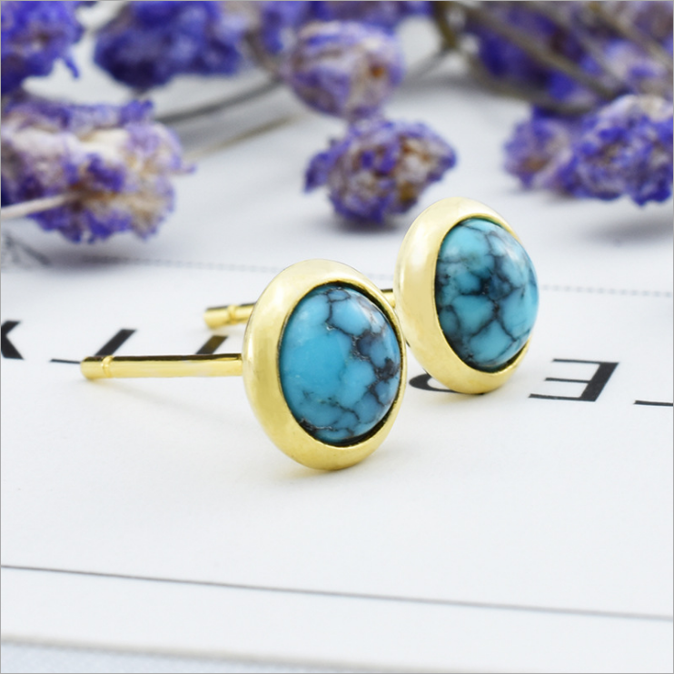 天然石 トルコ石イヤピアス 925シルバーとゴールド 過敏防ぐ